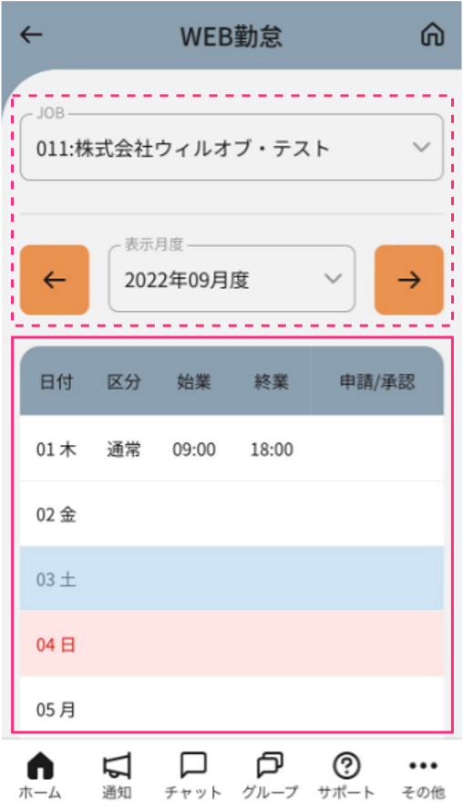 1. TOP画面の「WEB勤怠」もしくはメニューバー>申請する>WEB勤怠をクリックする。